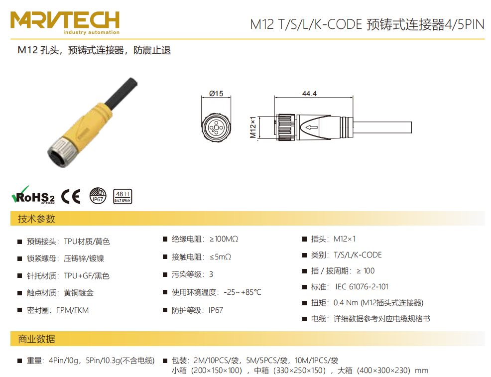 M 12-口金-プレキャストコネクタ-防振後退防止-4/5 PIN