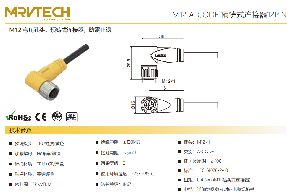 M 12-コーナータップ-プレキャストコネクタ-防振後退防止-12 PIN