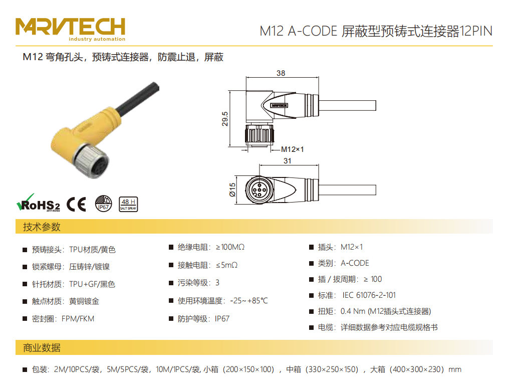 M 12-コーナータップ-プレキャストコネクタ-防振後退防止-シールド-12 PIN