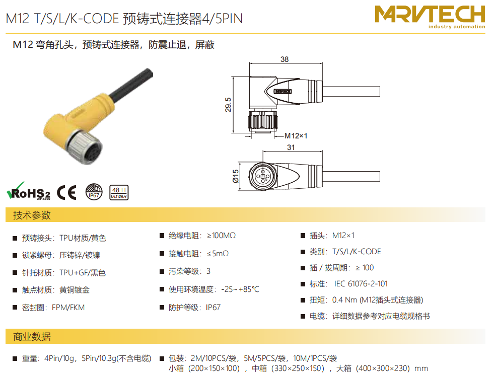 M 12-コーナータップ-プレキャストコネクタ-防振後退防止-シールド-4/5 PIN