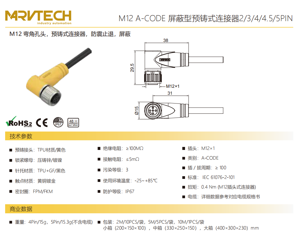 M 12-コーナータップ-プレキャストコネクタ-防振後退防止-シールド-2/3/4/4.5/5 PIN