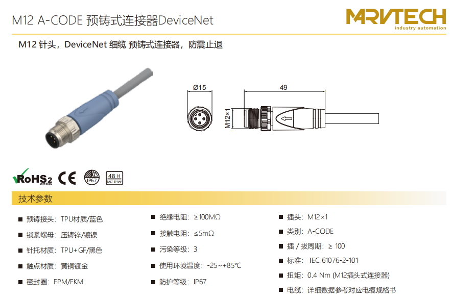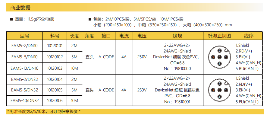 M 12-針-DeviceNet-ケーブル-プレキャストコネクタ-防振後退防止