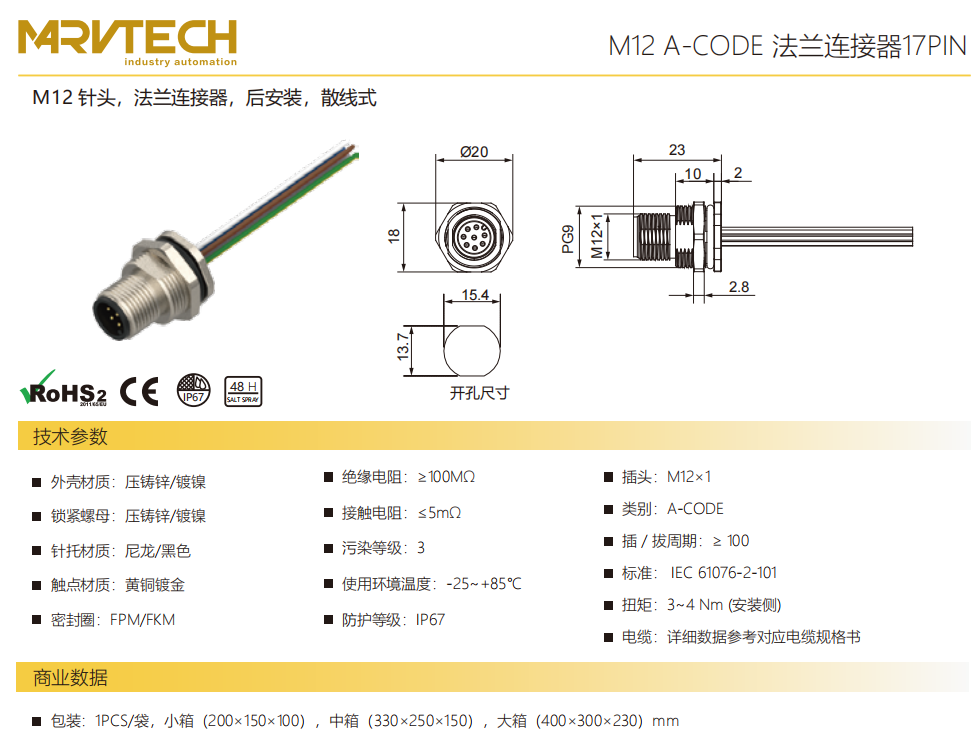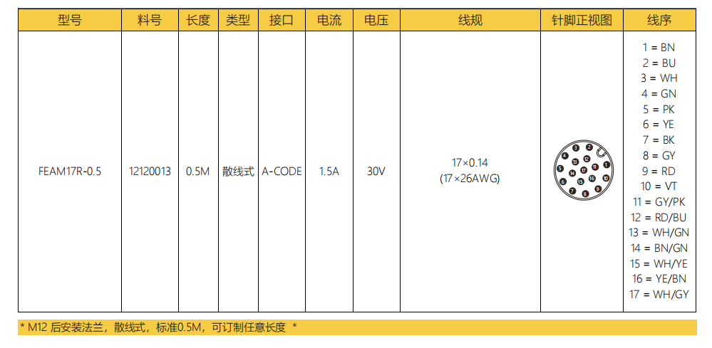 M 12-ピン-フランジコネクタ-後付け-散線式-17 PIN