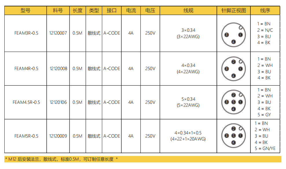 M 12-ニードル-フランジコネクタ-後付け-散線式-3/4/4.5/5 PIN