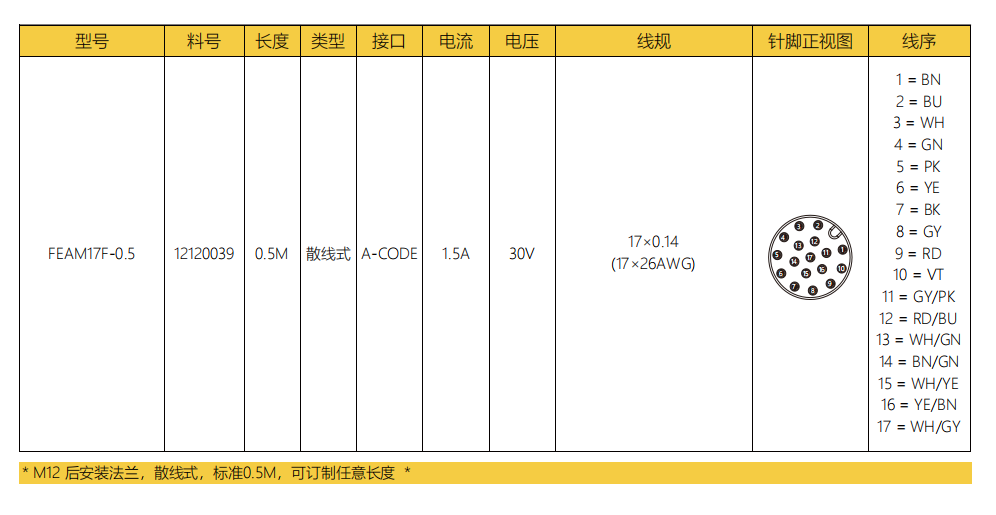 M 12-ピン-フランジコネクタ-前取付け-散線式-17 PIN