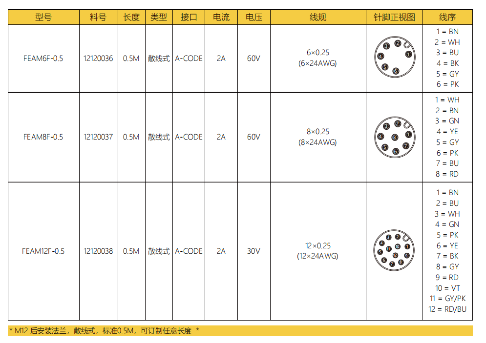 M 12-ニードル-フランジコネクタ-前取付け-散線式-3/4/4.5/5 PIN
