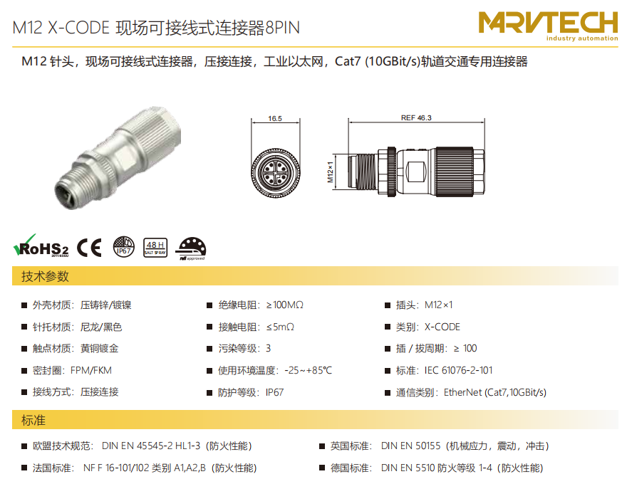M 12-ニードル-フィールド結線可能コネクタ-圧着接続-工業イーサネット-8 PIN