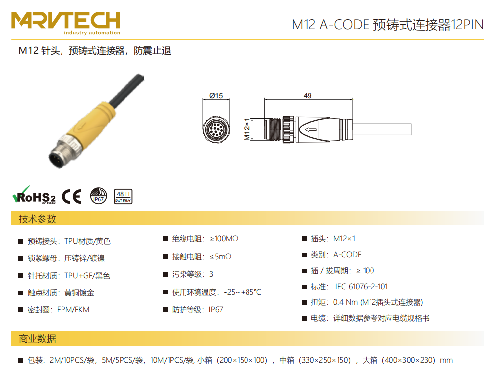 M 12-針-プレキャストコネクタ-防振後退防止-12 PIN