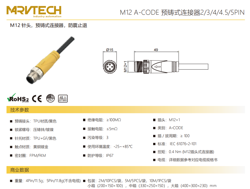 M 12-ニードル-プレキャストコネクタ-防振後退防止-2/3/4/4.5/5 PIN