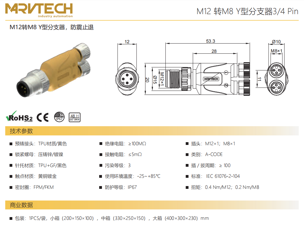 M 12回転M 8 Y型分岐器-防振後退防止3/4 Pin
