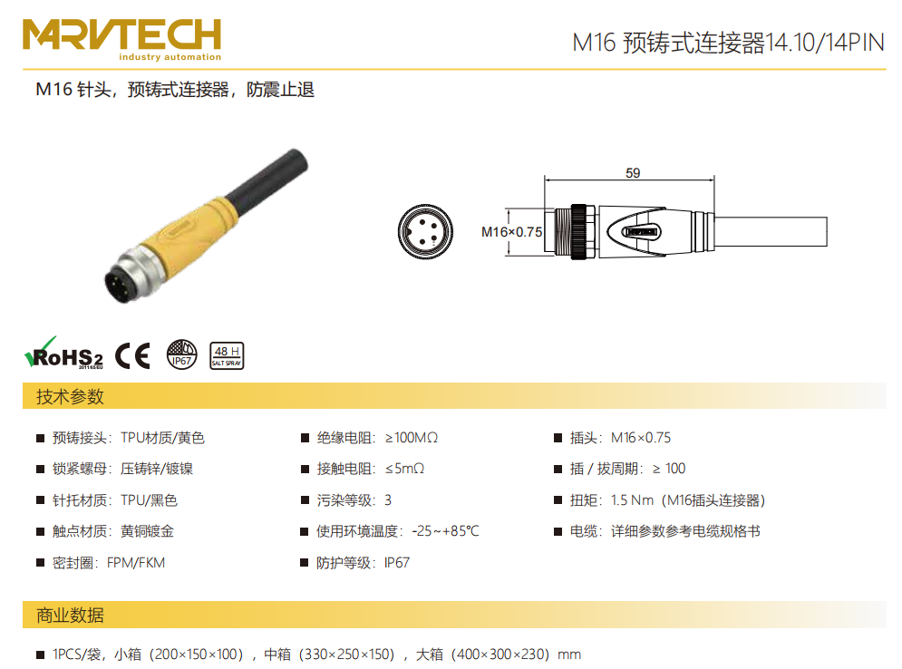 M 16-針-プレキャストコネクタ-防振後退防止-14.10/14 PIN
