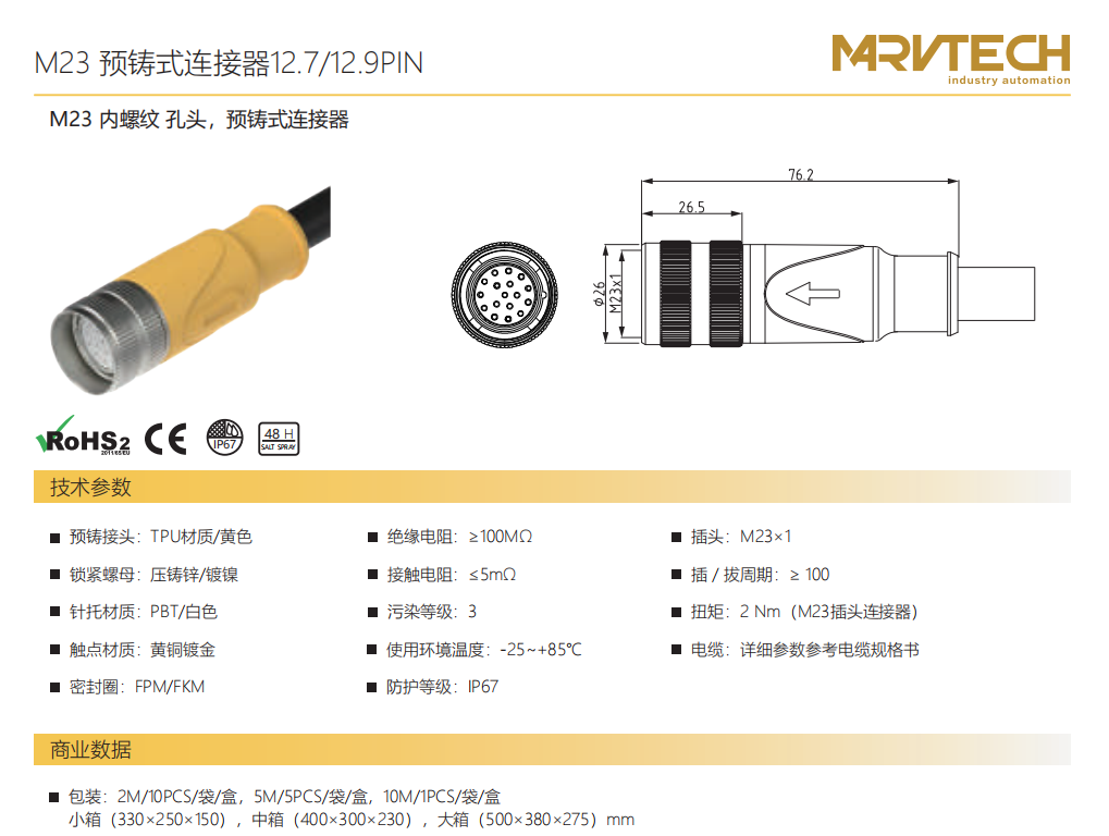 M 23雌ねじ-口金-プレキャストコネクタ12.7/12.9 PIN