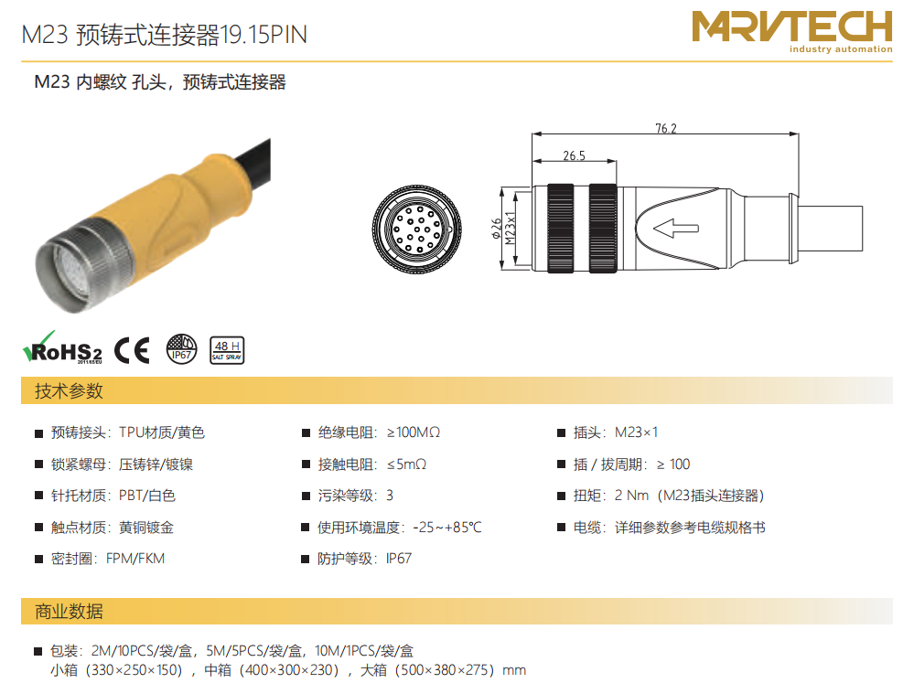 M 23雌ねじ-口金-プレキャストコネクタ19.15 PIN