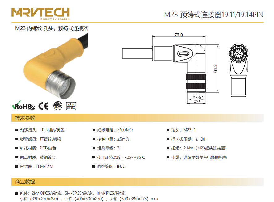 M 23雌ねじ-口金-プレキャストコネクタ19.15 PIN