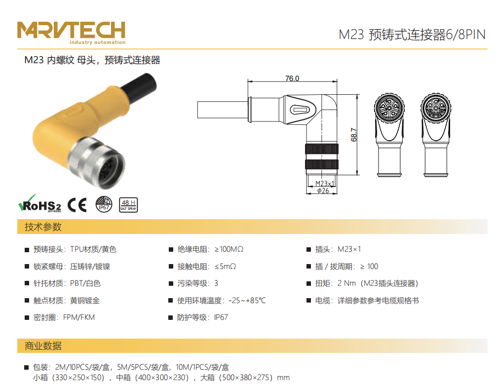 M 23雌ねじ-メス-プレキャストコネクタ6/8 PIN
