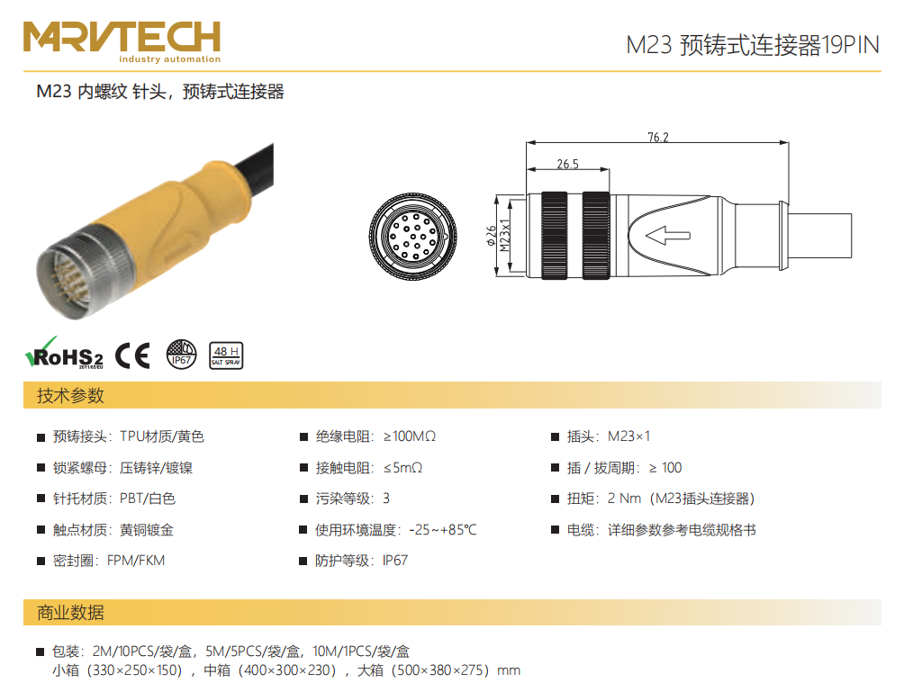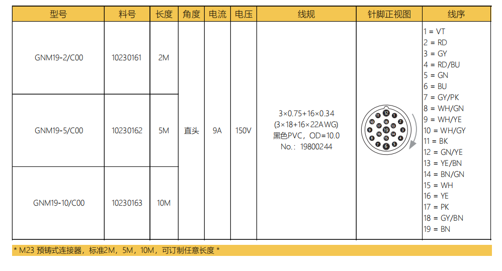M 23雌ねじ-針-プレキャストコネクタ19 PIN