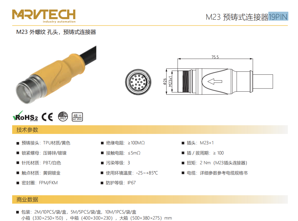 M 23雄ねじ穴ヘッド-プレキャストコネクタ19 PIN