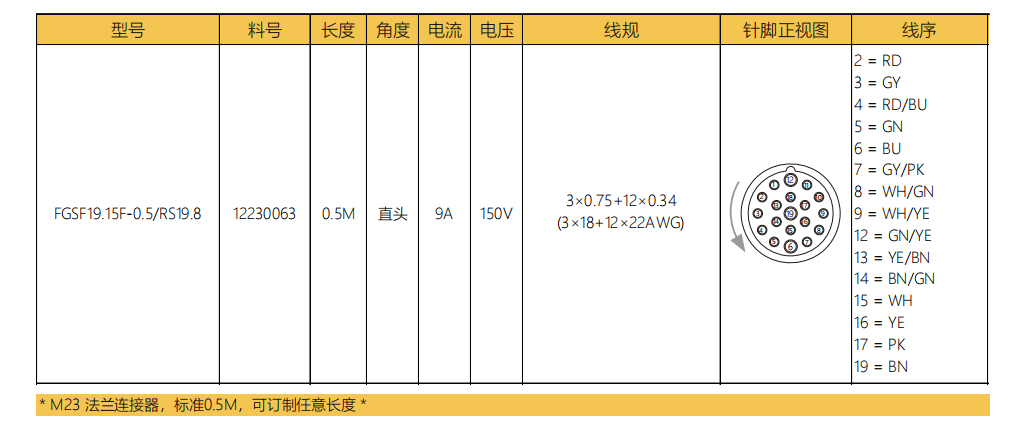 M 23雄ねじ-口金-フランジコネクタ-前取付-RS 19.8-散線式17 PIN