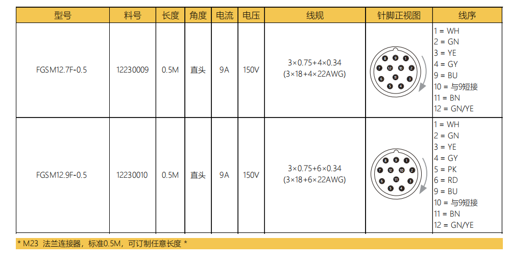 M 23雄ねじ-針-フランジコネクタ-前取付-散線式12.11/12 PIN