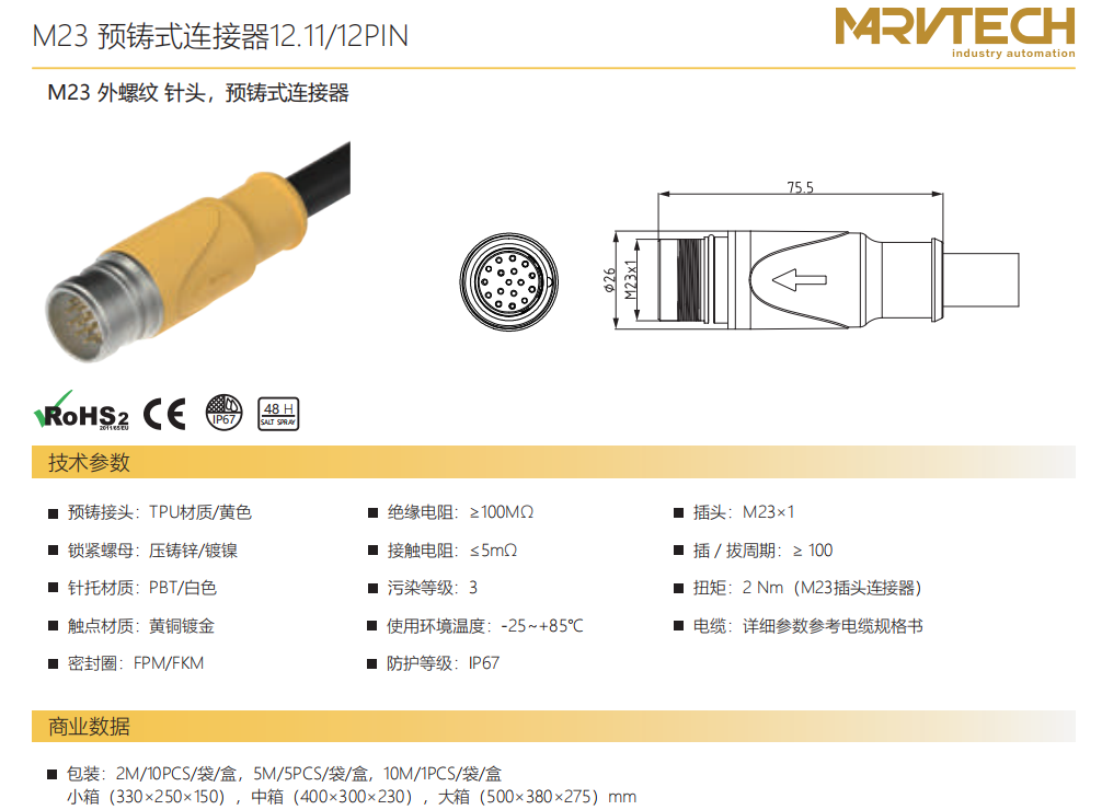 M 23雄ねじ-針-プレキャストコネクタ12.7/12.9 PIN