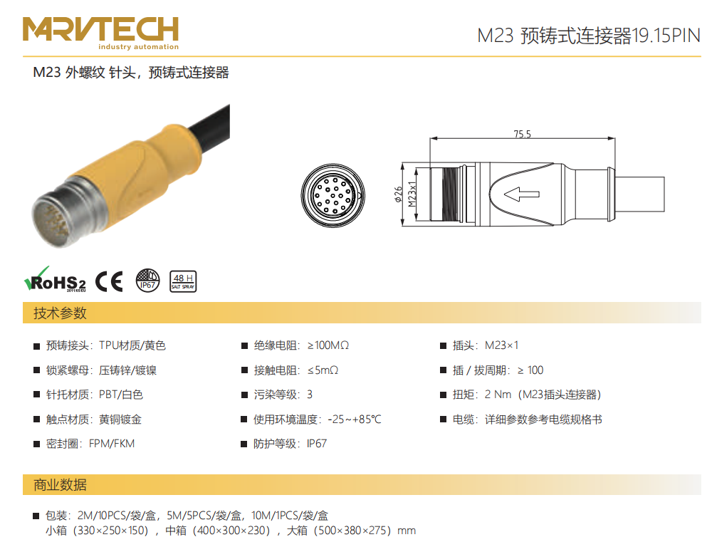 M 23雄ねじ-針-プレキャストコネクタ19.15 PIN