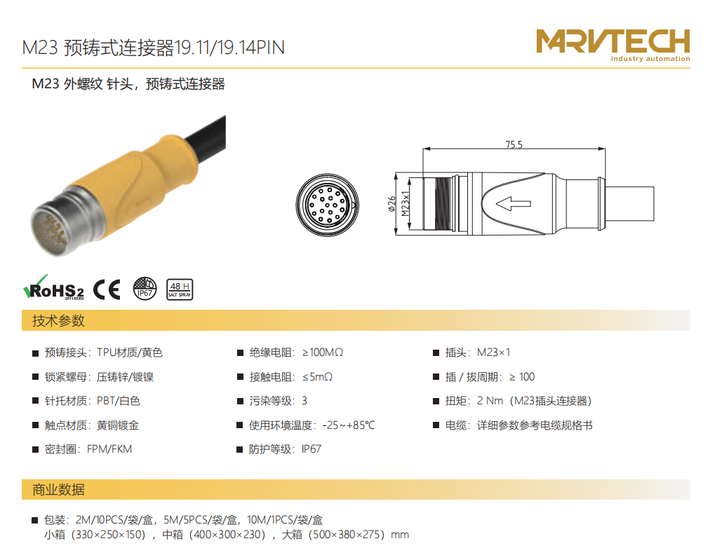 M 23雄ねじ-針-プレキャストコネクタ19.15 PIN