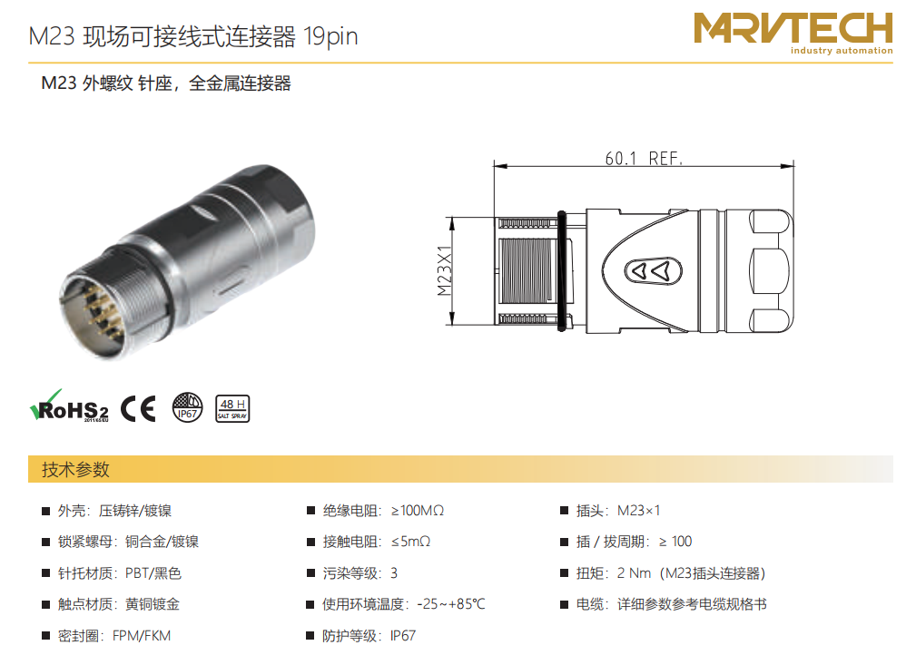 M 23雄ねじ-針座-全金属コネクタ19 pin
