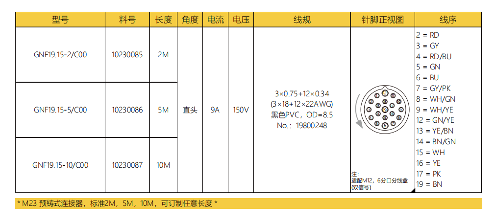 M 23-雌ねじ-口金-プレキャストコネクタ-19.15 PIN