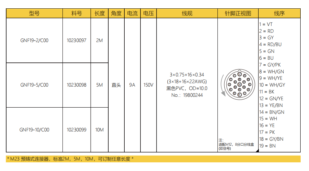 M 23-雌ねじ-針-プレキャストコネクタ-12.7/12.9 PIN