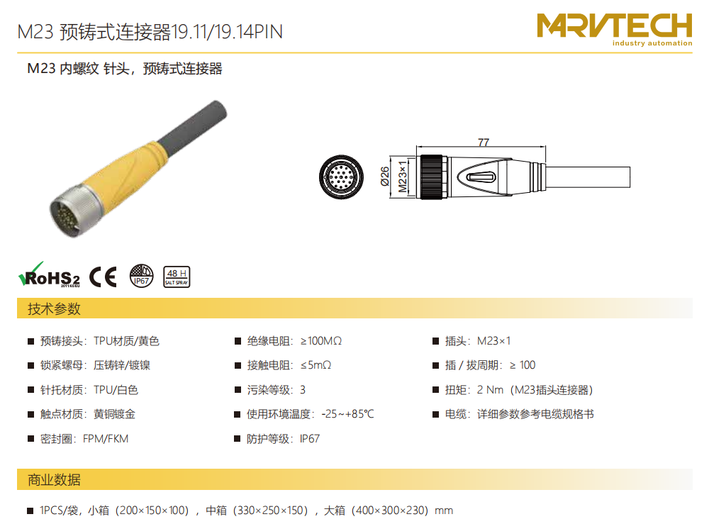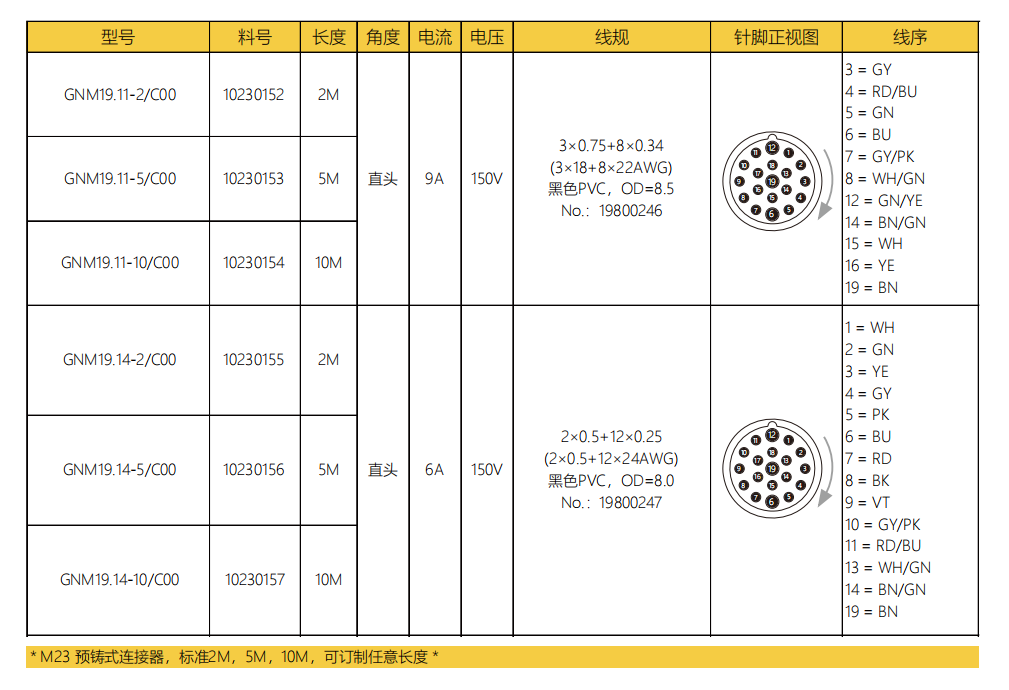 M 23-雌ねじ-針-プレキャストコネクタ-19.15 PIN