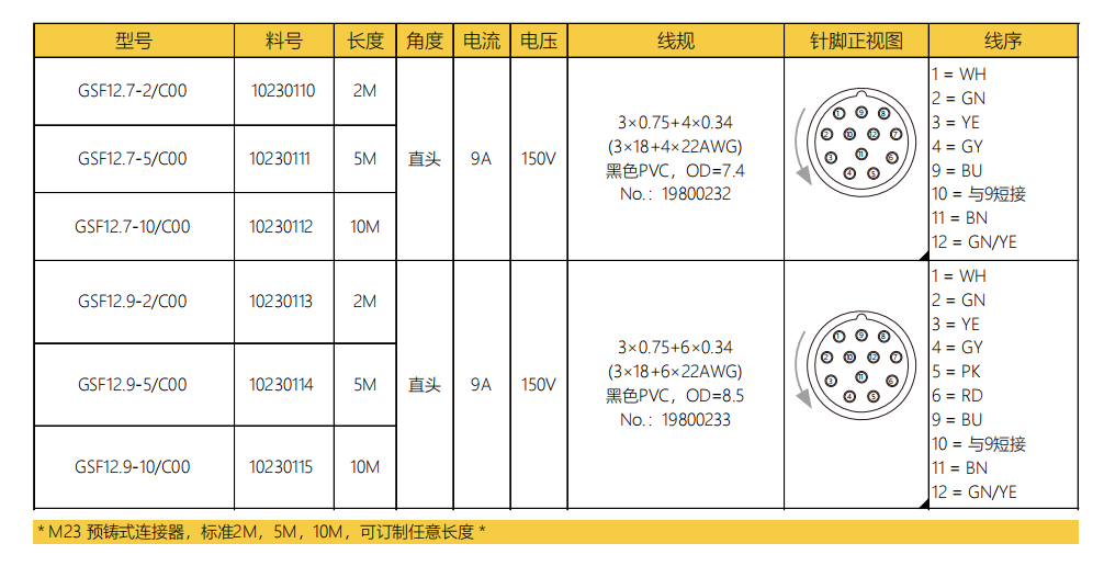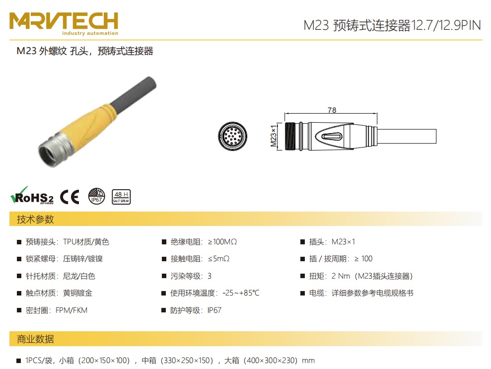 M 23-雄ねじ-口金-プレキャストコネクタ-12.7/12.9 PIN