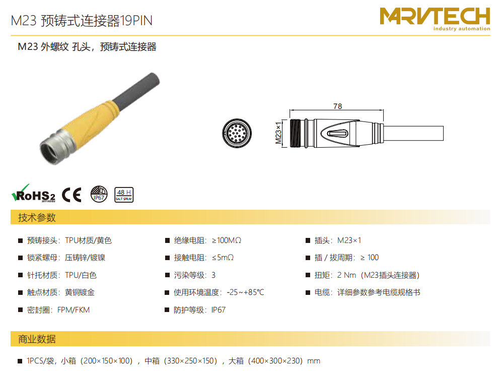 M 23-雄ねじ-口金-プレキャストコネクタ-19 PIN