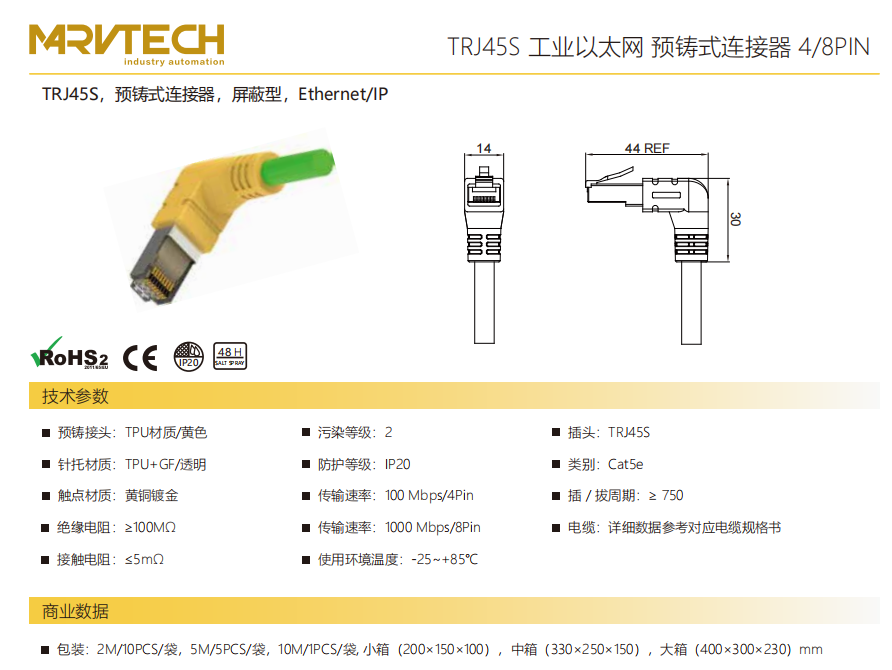 ショートタイプRJ 45 S-プレキャストコネクタ-シールドタイプ-4/8 PIN