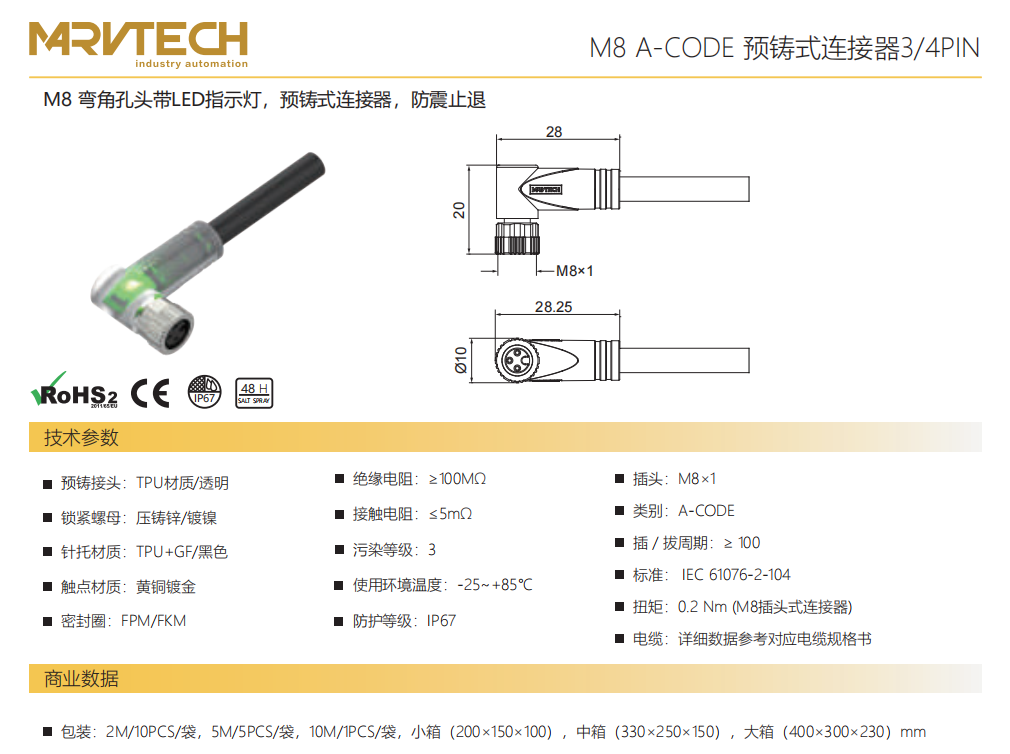プレキャストコネクタ-M 8コーナータップLEDインジケータ付き