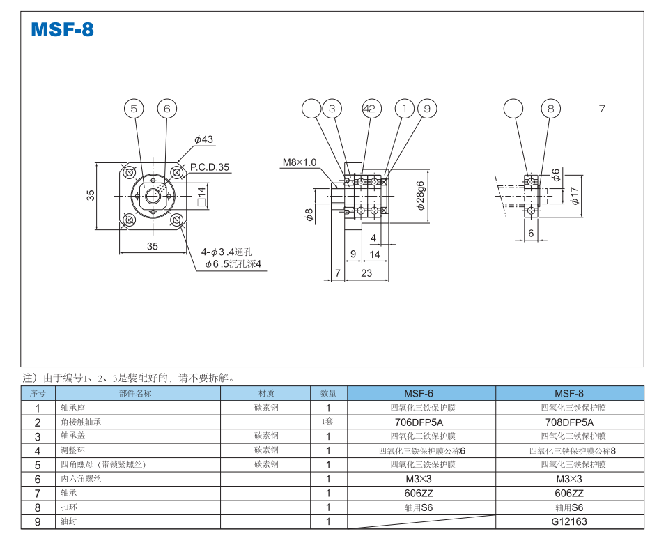ロッドホルダアセンブリ固定(駆動)側-角型
