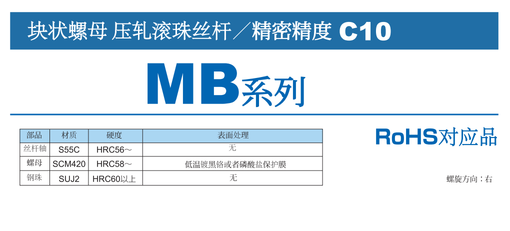 ブロックナット圧延ボールネジ-精度精密C 10:MBシリーズ