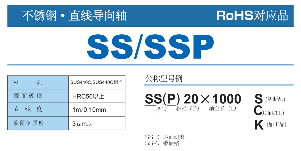 ステンレス・直線ガイド軸:SS-SP