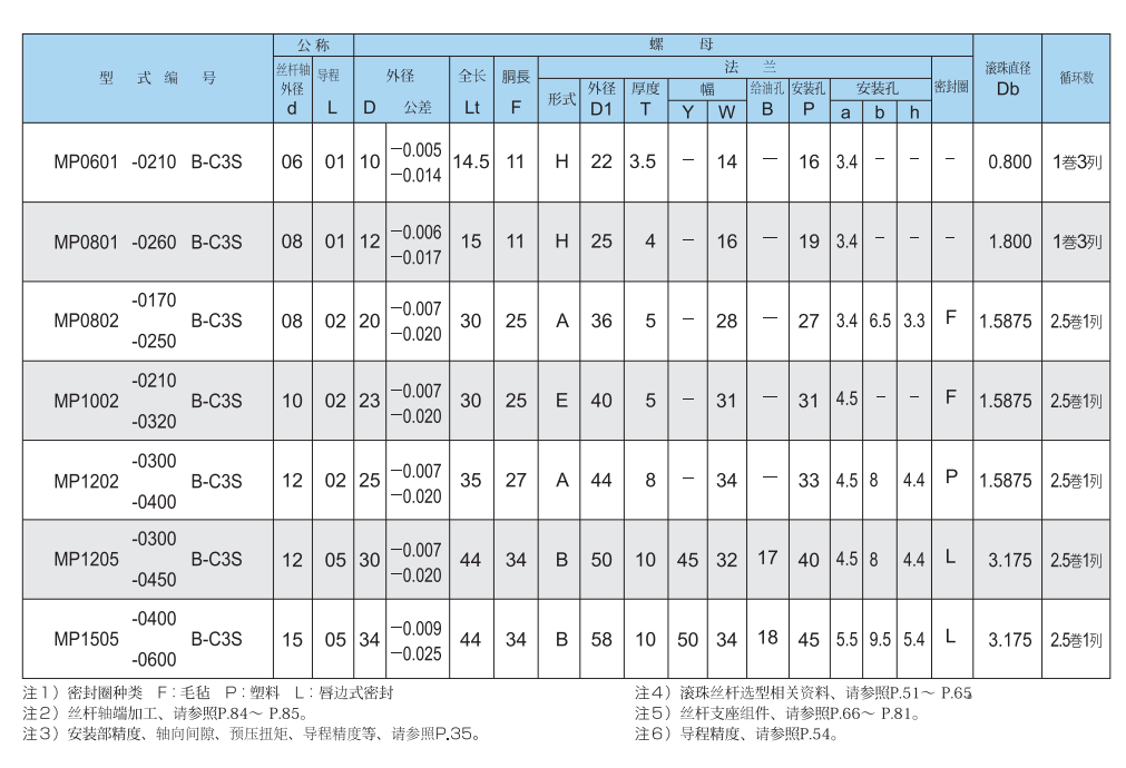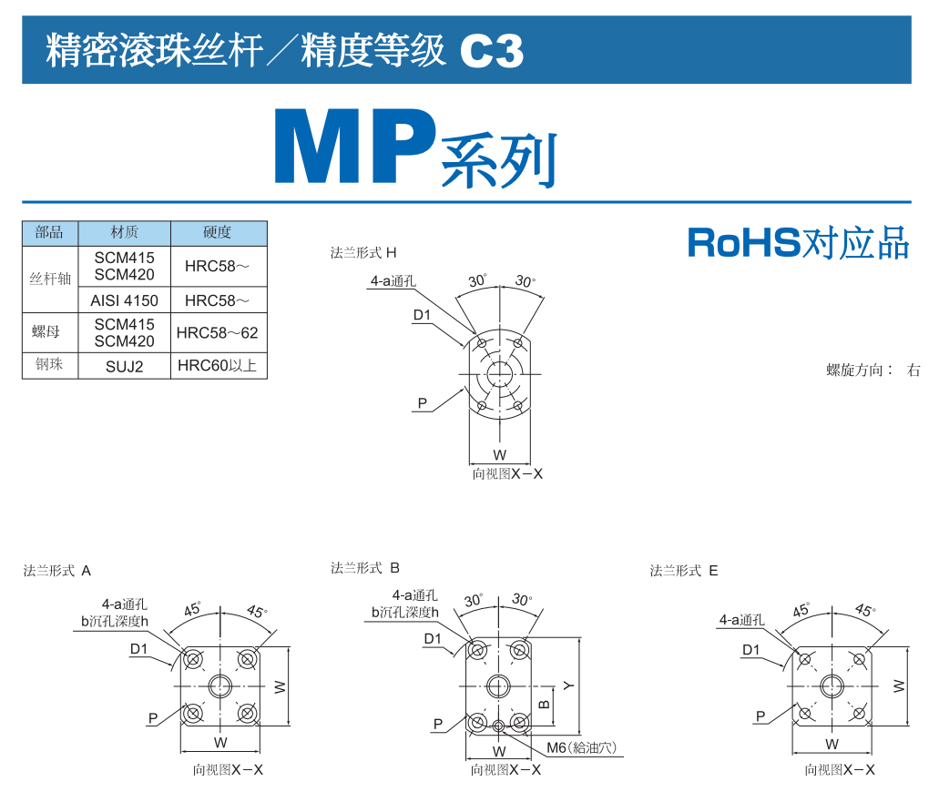 精密ボールネジ-精度レベルC 3:MPシリーズ