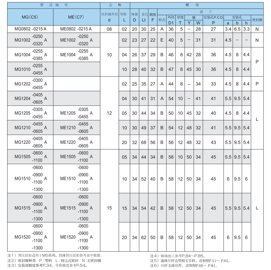 精密ボールネジ-精度レベルC 3-C 7:MG-MEシリーズ