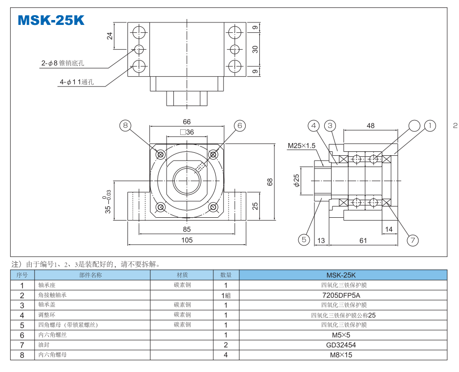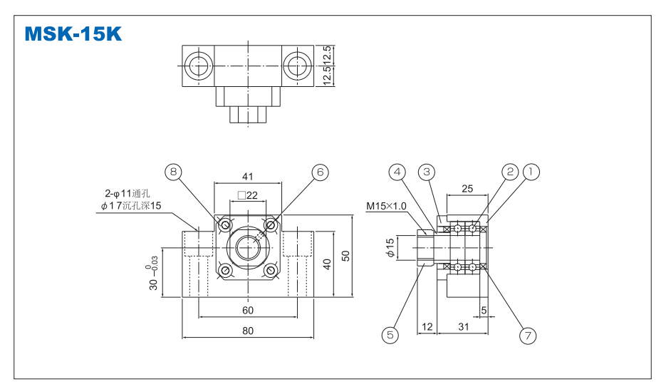 ロッドホルダアセンブリ固定(駆動)側-角型