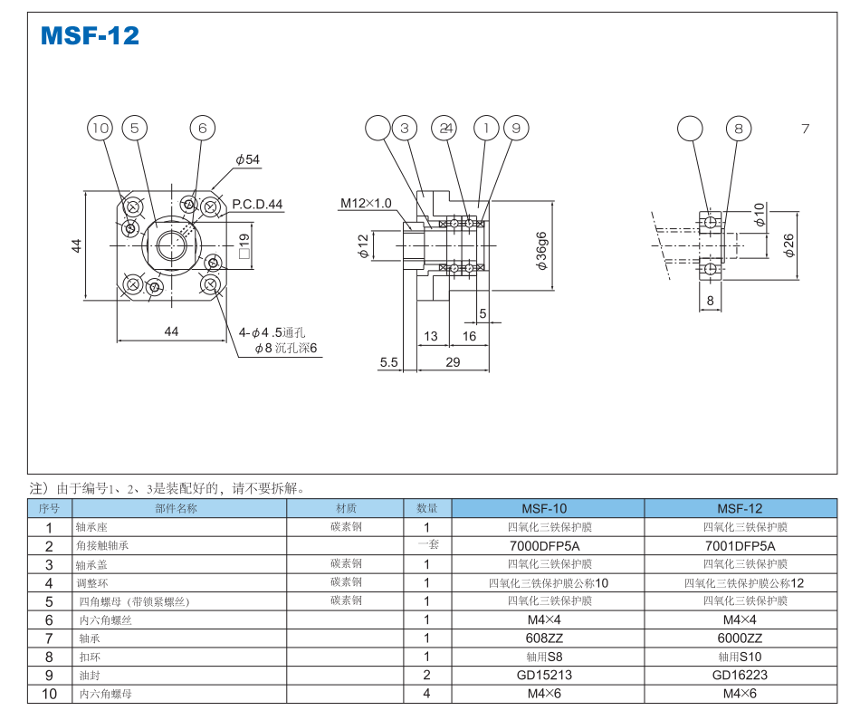 ロッドホルダアセンブリ固定(駆動)側-角型