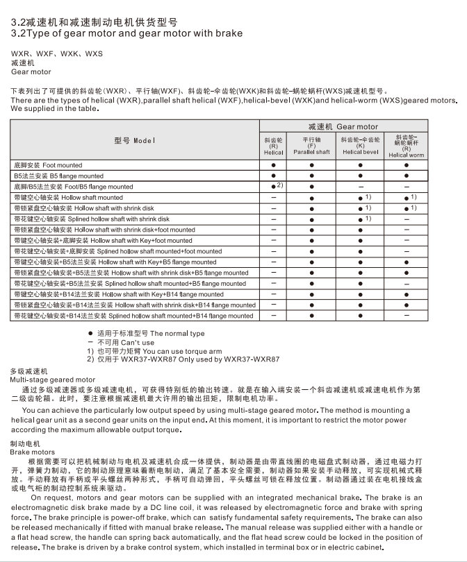 四大シリーズ歯車減速モータ-WXRシリーズ