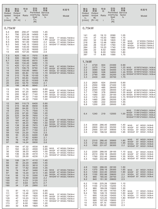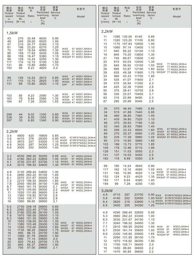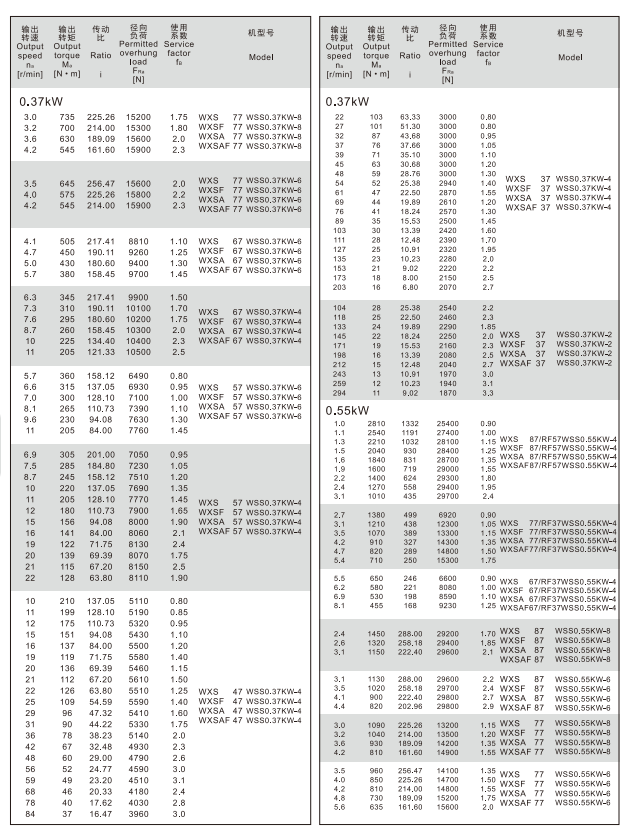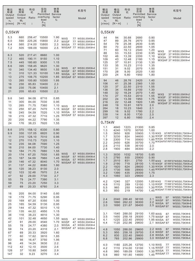 四大シリーズ歯車減速モータ-WXSシリーズ