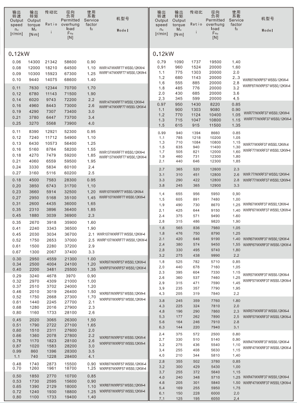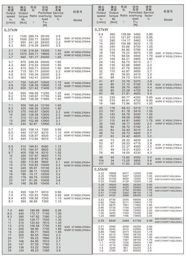 四大シリーズ歯車減速モータ-WXRシリーズ
