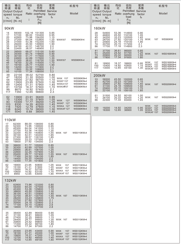 四大シリーズ歯車減速モータ-WXKシリーズ