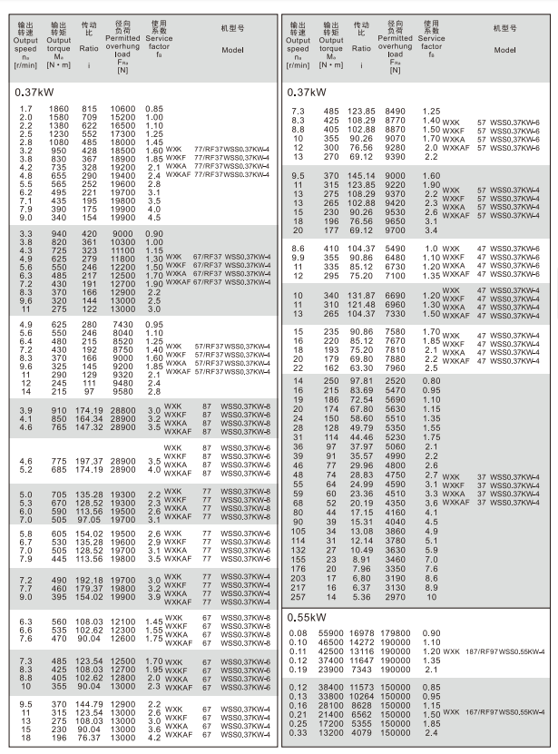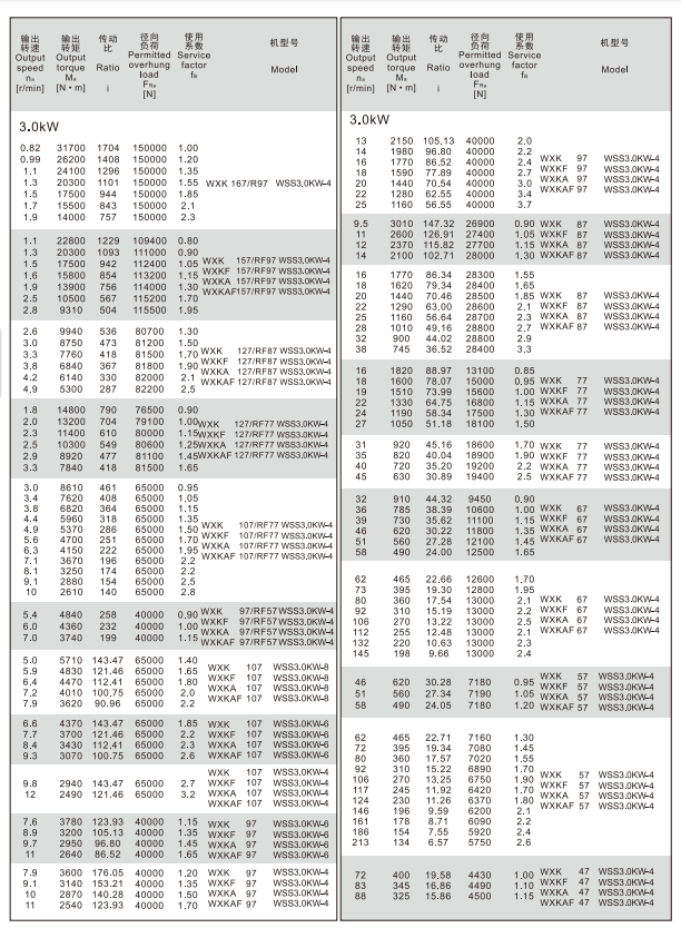 四大シリーズ歯車減速モータ-WXKシリーズ