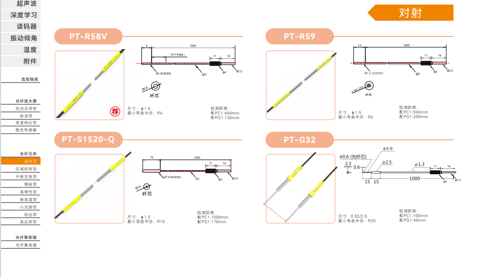 光ファイバセンサ-汎用型-光ファイバ素子-対射