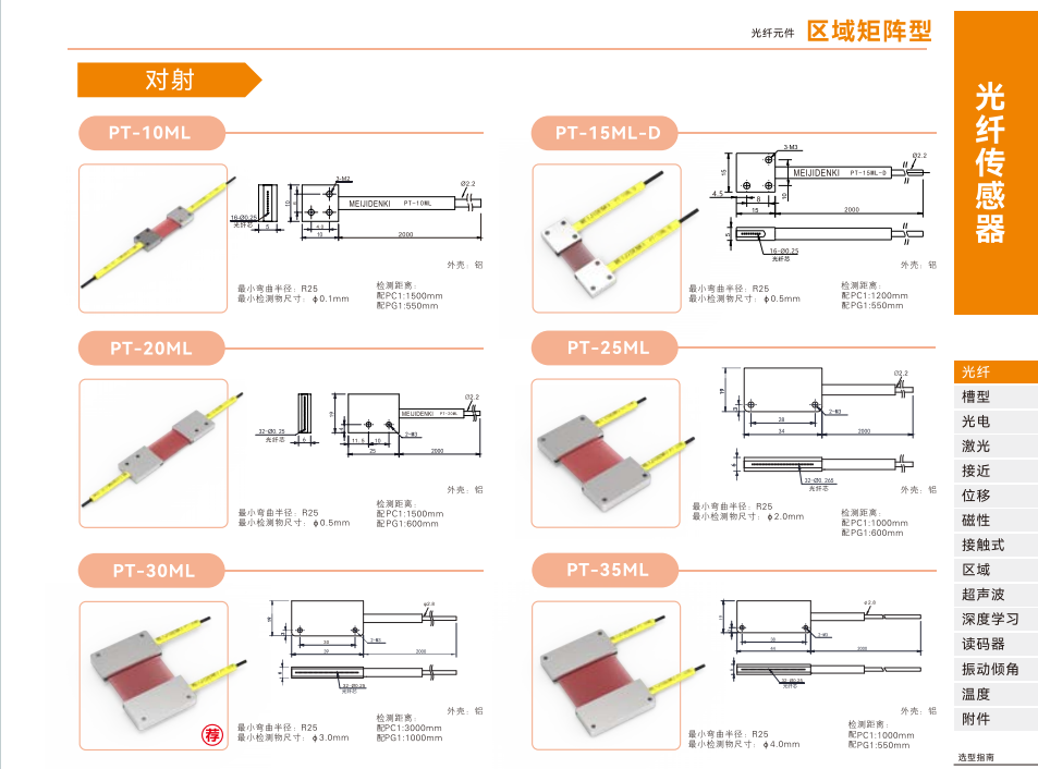 光ファイバセンサ-領域マトリクス型-光ファイバ素子-対射