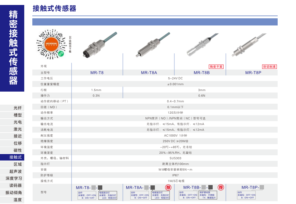精密接触センサー-型式選択ガイド