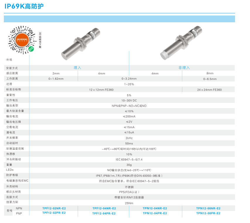 近接センサ-IP 69 K高防護